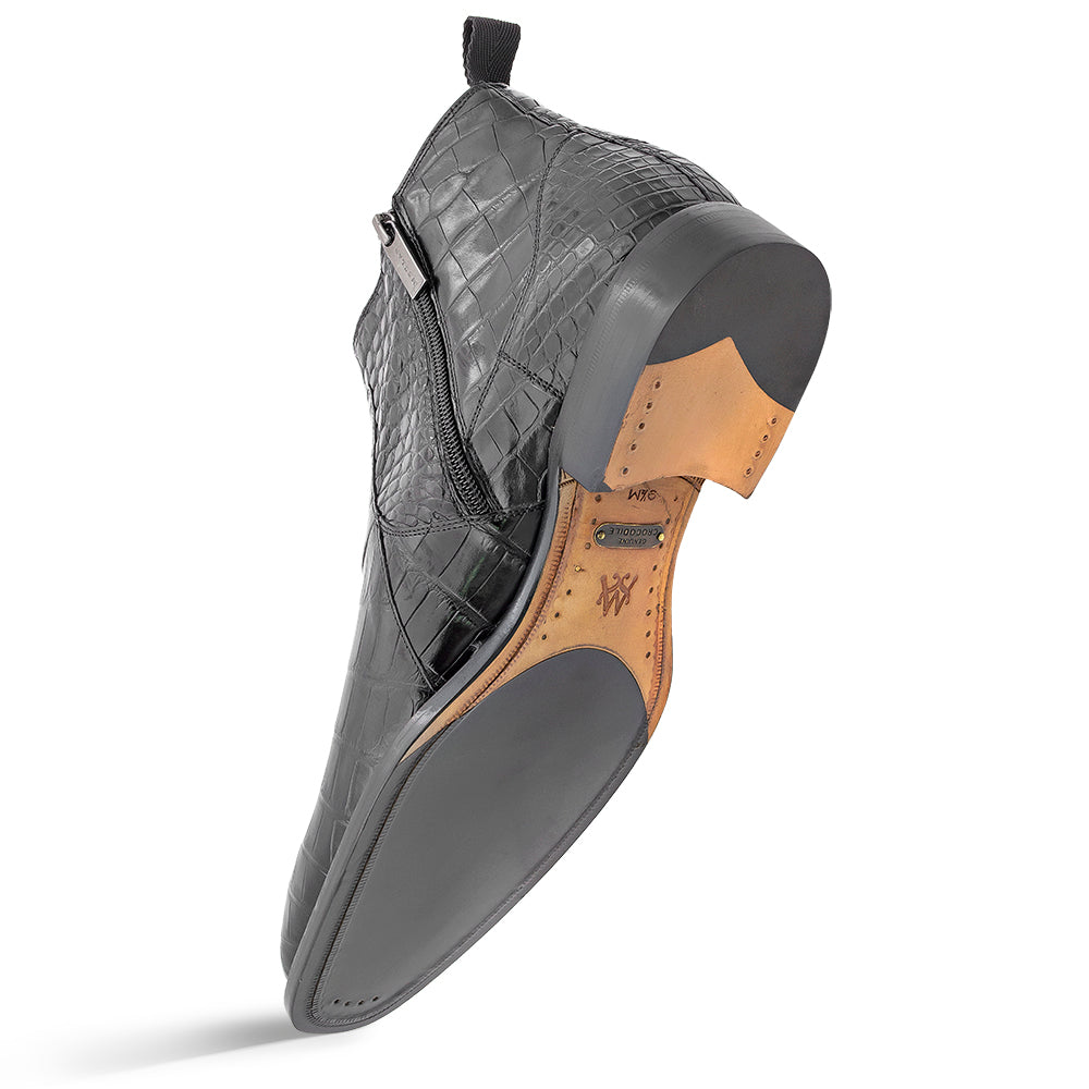 Mezlan kicks things up a notch with a black Alligator Chelsea Boot. Straight up iconic.