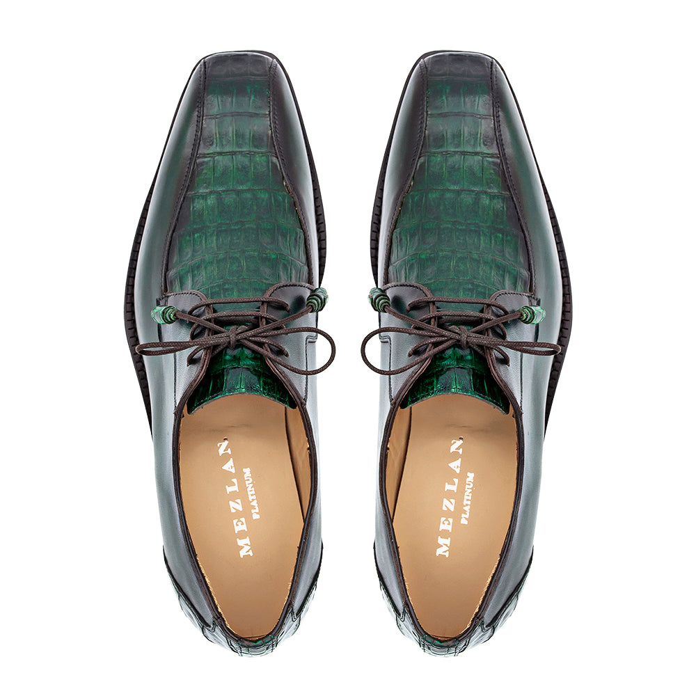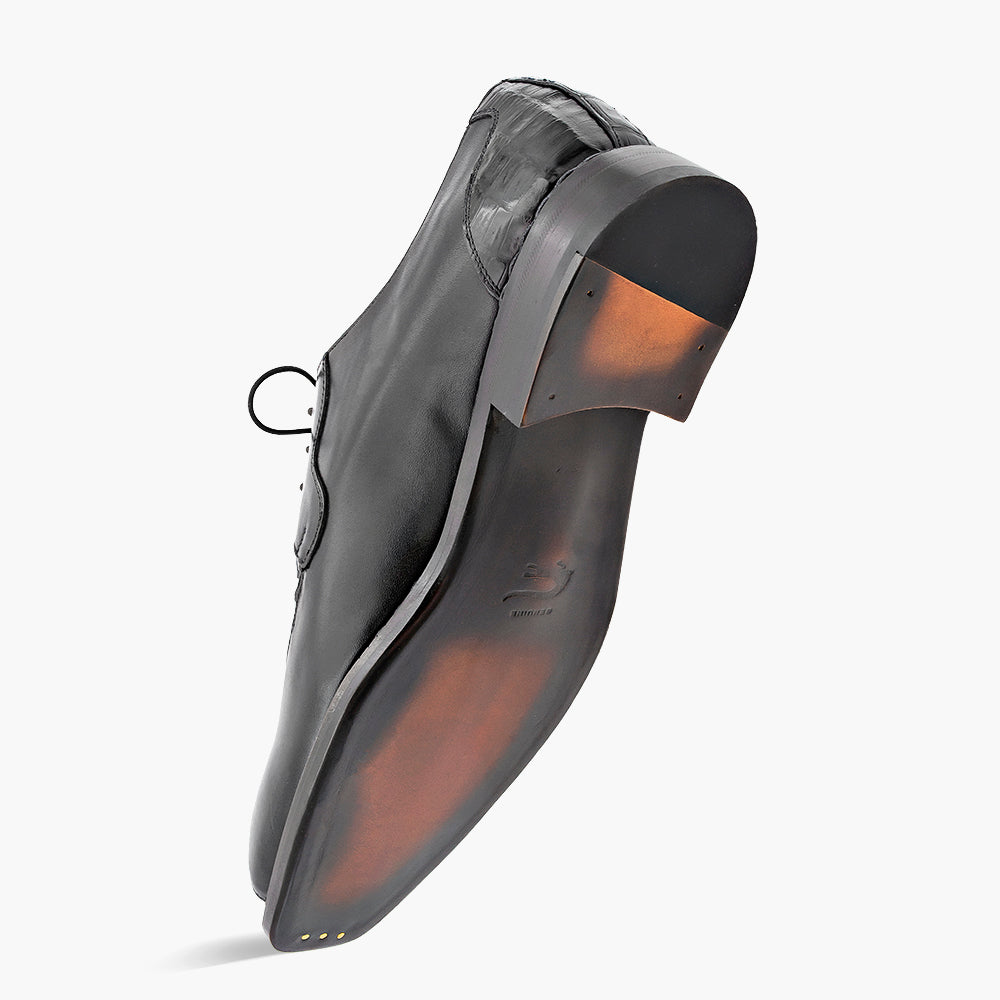 The bicycle toe lace up with a new twist as the materials of choice take on a combination of genuine crocodile and hand-stained calfskin; a masterpiece re-imagined.